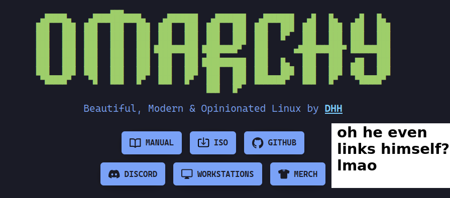 As Framework social media support for Omarchy ramped up, I started seeing Omarchy mentioned in negative light, both on the Framework Discord server, and on unrelated servers, brought up often in connection to Framework. Given that I’ve been vocally pro-Framework, I’ve also had multiple people derisively mention the Framework’s affinity to Omarchy to me personally. Surprised, I eventually started asking people and looking up myself, what’s the low-down on Omarchy, and was puzzled to learn that Omarchy is a more or less a set of ricing scripts for Arch, the main and biggest problem about them being the loud and visible “by DHH” label.