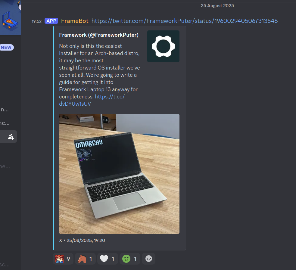 Already over a month ago, Omarchy posting in Framework discord elicited a reaction colloquially known as “you posted cringe”.