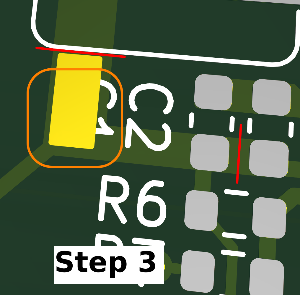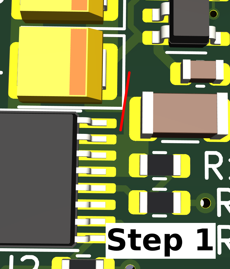 Make one copper cut to the right of the U2, as marked by the red line. to the right of it, when looking at the board. You must make the cut in the specific spot marked with red line.